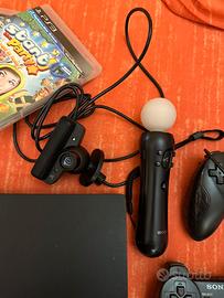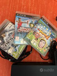 Vendo causa inutilizzo ps3 con camera eye + move + 3 giochi + 1 joystick wireless + 1 joystick con filo. La console è perfettamente funzionante, ha solo una piccola scheggiatura come da foto.