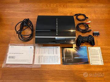 Vendo stupenda Playstation 3 Fat da collezione completa di tutti gli accessori originali. Scatola originale con seriale corrispondente in buone condizioni generali (nella parte frontale é rovinata come da foto), presenti tutti i manuali, gli imballaggi originali, tutti i cavi ed il suo Joystick. Presente la velina originale che protegge la Play station. La console è in ottime condizioni con una scocca mantenuta veramente bene ancora molto lucida e senza graffi o segni da caduta e perfettamente funzionante in ogni sua parte. Presenta entrambi i sigilli di garanzia (console e hard disk) e non ha mai sofferto di alcun tipo di problema! Pezzo per collezionisti! Ottimo affare da non farsi sfuggire!