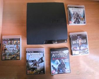 Vendo PlayStation 3 Slim 320GB, con cavo, perfettamente funzionante e in ottime condizioni. La console è stata usata poco, sempre tenuta con cura e funziona senza problemi. Il controller NON è incluso. Inclusi nel prezzo anche i seguenti giochi: - GTA V - Battlefield 3 - Assassin’s Creed Rogue - Assassin’s Creed Revelations - Assassin’s Creed IV Black Flag ✔ Console funzionante al 100% ✔ Giochi originali e completi ✔ Dischi in buone condizioni Condizioni generali molto buone, come da foto. Vendo per non utilizzo.