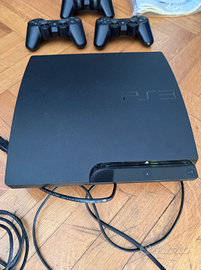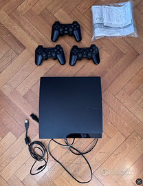 PS3 Slim come nuova, usata pochissimo e tenuta in scatola originale. Completa di 3 joystick funzionanti e libretto di uso e manutenzione.