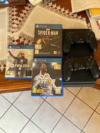 Vendo ps4 in buone condizioni con 3 giochi tra cui fifa 18 fifa 23 e spiderman miles morales + 2 controller in buone condizioni funzionanti e tutto l unica cosa che hanno un po i pomelli consumati