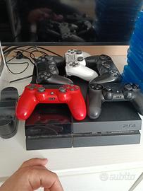 vendo PS4 perfettamente funzionante con 4 joypad stazione di ricarica vari giochi e VR PREZZO 300 € NON TRATTABILI .ritiro a mano.