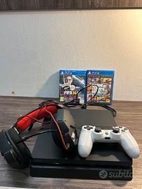 5. Offro una PS4 Slim in ottime condizioni, con cuffie da gaming, controller e due giochi.