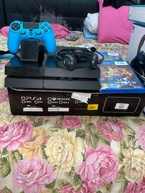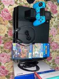 Vendo questa ps4 con controller e base di ricarica, cuffie da gaming e volante con 6 giochi inclusi.