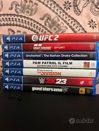 PlayStation 4 - 256 GB In vendita PS4 in ottime condizioni, completa di: •2 controller originali •Stazione di ricarica Giochi inclusi: •UFC 2 •Gran Turismo Sport •Uncharted •Paw Patrol •The Division •WWE 2K23 (VENDUTO) •GTA 5 •FIFA 23 (digitale) •Overcooked (digitale) Perfettamente funzionante, in ottime condizioni.