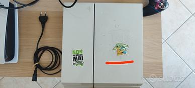 PS4 originale bianca (500 gB) con cavo HDMI, filo di alimentazione della PlayStation e controller (non originale ma funzionante) della PS4, in ottime condizioni e che non ha mai dato problemi, con confezione originale.