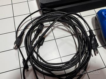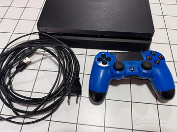 PlayStation 4 Modello Slim con joypad originale con cavo corredato per la ricarica e cavetteria completa.
