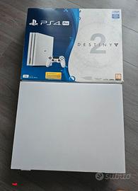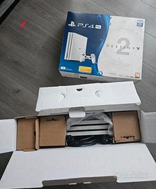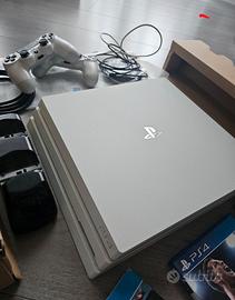 Ps4 Pro 1TB + 2 controller + tre giochi + scatola ed istruzioni ed una besetta per doppio carica dei controller. ad 1 dei 2 controller manca un copri analogico in gomma che non compromette utilizzo