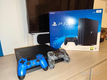 PlayStation 4 Pro 4K con spazio su disco di 1 TB, con poche ore di gioco e CON DISCO. Vendo per non utilizzo. Completa di cavi di collegamento e 2 Joystick, di cui uno non originale. Tutto perfettamente funzionante con scatola originale, disponibile qualsiasi prova.