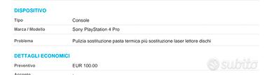 vendo ps4 pro perfettamente funzionante appena fatta pasta termica e lettore ottico nuovo con 1 joystick e alcuni giochi gia installati.