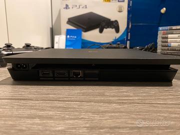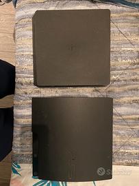 Vendo ps4 slim da 500g comprensiva di tutto + scatola perfettamente funzionate e ps3 comprensiva di cavi e joystick, più tutti i giochi presenti in foto.