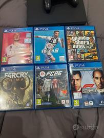 Vendo PS4 Slim 1TB perfettamente funzionante. Inclusi: ✅ Controller originale (manca un gommino) ✅ Cavo HDMI + alimentazione + cavo ricarica controller Console testata, nessun problema. Vendita per passaggio a ps5 🎮 Giochi inclusi da parte: • EA Sports FC 26 = 30€ • GTA V= 10€ • FIFA 19= 5€ • FIFA 20= 10€ • Far Cry Primal= 10€ • F1 2019= 10€ Ritiro a mano preferibilmente.