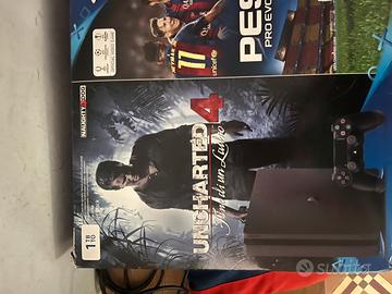 Ps4 slim da 1Tb con scatola originale e due controller Vendo a causa di inutilizzo avendo acquistato la Ps5 Prezzo poco trattabile, al massimo posso aggiungere qualche videogame