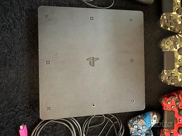 Vendo Ps4 Slim (non ricordo se un 500gb o un 1 Th) più 5 joistick perfettamente funzionanti Custom, 3 cavi di alimentazione, 1 cavo hdmi (non originale) 5 cavi USB (non originali)