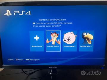 PS4 Slim 500GB funzionante. Monitor Samsung 24” incluso. Controller compatibile funzionante + giochi (FIFA 23, FIFA 18, Battlefield 1). Ritiro a mano a Castelveccana. Prezzo 180€