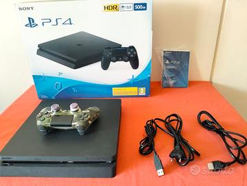 Scatola originale PS4 slim 500 GB cavo HDMI cavo alimentazione 1 controller wireless DUAL SHOCK + 6 giochi (vedi foto) Batteria wireless per controller (12 ore)