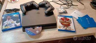 Sono compresi due giochi: Fifa 18 e Street fighter, compresi anche due joystick, auricolare.