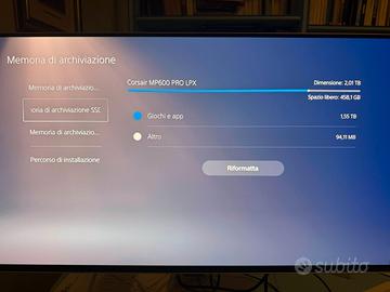 Vendo PS5 DIGITAL EDITION 825 Gigabyte (attenzione non è la versione SLIM ma la DIGITAL prima versione) con installato ulteriore SSD CORSAIR MP600 PRO LPX da 2 Terabyte + 2 controller + scatola originale. E' incluso ovviamente il cavo di alimentazione + il cavo HDMI + cavo usb per controller. Da tenere in considerazione che l'SSD supplementare che ho installato all'interno, ovvero il CORSAIR MP600 PRO LPX da 2 Terabyte, costa da solo sui 185 euro. Disponibile per fornire altri video e foto del prodotto su richiesta. Disponibile a mostrare il funzionamento della console tramite videochiamata.
