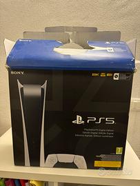 Ps5 digital comprata nuova a marzo 2023. Perfettamente funzionante, completa di accessori e joystick originale. Unico difetto un angolo scheggiato come visibile in una delle foto.