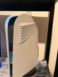 ps5 digital con due controller,plastiche nuovepiu plastiche con prese daria piu base per tenerla in piedi.