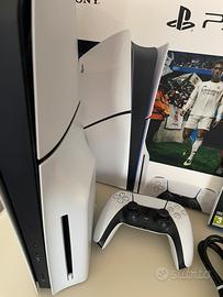Sony PlayStation 5 slim versione disco con 1Tb di hard disc, controller, cavi e gioco Fifa 26.