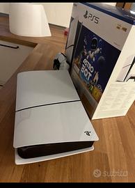 PlayStation 5 slim con disco in PERFETTE CONDIZIONI! , colore bianco. la playstation e praticamente NUOVA poiche e stata acquistata in negozio un mese e mezzo fa (giugno). costretto a vendere per esigenze economiche. - Include un controller e cavi