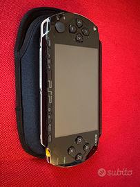 Console portatile Sony PSP (PlayStation Portable) di colore nero, in ottime condizioni estetiche. Schermo ampio e luminoso, comandi reattivi e scocca ben tenuta, completa di custodia protettiva. Ideale per giocare, guardare film o ascoltare musica ovunque.