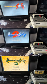 Romancing Saga 1-3 Lotto Nintendo Super Famicom SFC/SNES Ntsc-j Japan Giochi dalla mia collezione personale, versione giapponese. In foto le condizioni (ingiallimento, danno a sticker se presente). I giochi sono stati testati. Questi giochi funzionano solo su un Super Famicom giapponese. La console in foto usata per testare i giochi NON e' inclusa. Disponibile sia per spedizione che per vendita in loco.