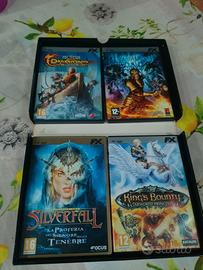 Un'ottima selezione di giochi di ruolo con i seguenti titoli: - Avencast - King's Bounty: Armored Princess - Drakensang: River of time - Silverfall: la profezia del signore delle tenebre. Tutto in ottimo stato perfetto da mettere in esposizione nella vostra collezione.