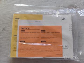 Scatola box PlayStation 2 slim con manuali originali ancora sigillati, cavo alimentazione e adattatore scart audio video
