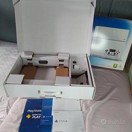 Box e imballaggio completo per PS4 glacier White. comprese di libretti e istruzioni. Scatola esterna con qualche difetto, imballaggio interno in ottime condizioni .