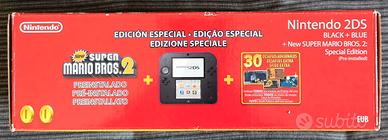Salve, vendo la scatola vuota della console Nintendo 2DS special edition edizione limitata New Super Mario Bros 2. Versione della scatola multilingua italiano, spagnolo, portoghese. Si vende solo la scatola che vedete in foto, senza inserti, senza manuali. Console NON inclusa. Codice a barre portoghese più bollino IGAC presenti.