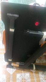 vendo scrivania da gaming usata pochissime volte, vendo per inutilizzo. No perditempo. lo scotch bianco che vedete e per far mantere le gambe della scrivania dopo che è stata smontata.