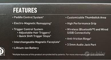 Vendo controller professionale SCUF Prestige per Xbox e PC, nuovo, mai utilizzato. Condizioni da collezione. Punti di forza: Ultra leggero (267g) con 4 paddle posteriori rimappabili e levette R2, L2 configurabili in base al gioco. Caratteristiche: Frontalino magnetico intercambiabile e batteria ricaricabile (fino a 30h). Compatibilità: Xbox, PC. Condizioni: 10/10. Analogici perfetti, zero usura. Completo di scatola originale e accessori. Prezzo 140€ poco trattabili, praticamente introvabile in queste condizioni.