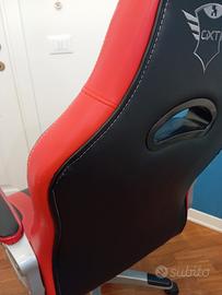 Vendo sedia da gaming Trust GXT. La sedia è stata tenuta con molta cura ed è in condizioni estetiche e funzionali eccellenti (La similpelle non presenta strappi o segni d'usura evidenti, Il meccanismo di sollevamento funziona perfettamente).