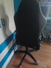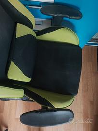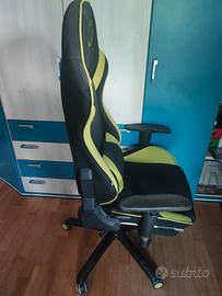 Vendo sedia da gaming professionale modello Tarmac Racer in colorazione nero e verde acido. Design ergonomico, completa di cuscino lombare regolabile per il massimo comfort. Dotata di braccioli regolabili, altezza variabile e rotelle resistenti. Tessuto traspirante e struttura robusta.