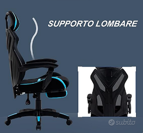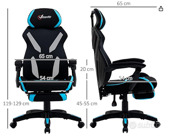 Vendo per errato acquisto doppione sedia gaming nuova, è un vero affare poiché è ancora imballata nello scatolo (aperto solo per controllare). Schienale reclinabile e poggiapiedi estraibile, lo schienale è ergonomico e traspirante, il poggiatesta è inclinabile. La seduta è ampia e comoda. Solo interessati. Solo ritiro a mano.