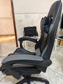 Vendo sedia gaming con sistema a pistone perfettamente funzionante, poggiapiedi estraibile e cuscino per la testa tutto senza nessun graffio e senza segni di usura