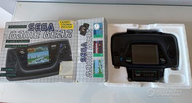 Rarissima sega game Gear da collezione nella sua scatola originale con imballi in polistirolo, comprensiva di tv tuner ( accessorio che all’epoca la trasfrmava in una tv analogica, ora utilizzabile con cavo av) e cassetta gioco Columns originale nella sua custodia in plastica. La console è stata completamente revisionata da laboratorio elettronico, dove sono stati sostituiti tutti i condensatori, è staa pulita ad ultrasuoni, quindi risulta perfettamente funzionante sia come video che audio. Le condizioni estetiche sono ottime nonostante l’età, e la cosa piu rara ed apprezzabile dai collezionisti è proprio il fatto di avere ancora la sua scatola originale,il laccetto, il gioco ecc..