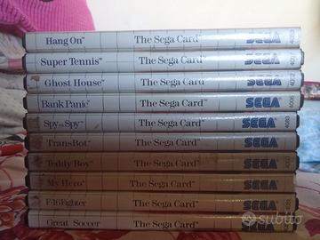 Lotto di 10 card (lotto completo in quanto in Europa e credo anche in America non esistono altri giochi in questo formato) per Sega Master System introvabili cosi composte: