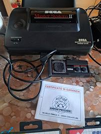sega master system 2( 2 consolle 1 box) con istruzioni poster libretti vari giochi alcuni con scatola e istruzioni altri solo istruzioni 2 pistole originali di saclos cavi vari 1 joystick tutto funzionante