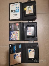 Di metà anni 90, una funzionante e l'altra no, completate da 3 pad (2 originali e 1 compatibile), 2 cavi antenna, 2 trasformatori, 4 giochi completi con scatola/cartuccia/manuale (Sonic, Fifa Soccer 95, European Club Soccer, 9 giochi in 1) e manuale d'istruzioni. Tutto in buono stato di conservazione.