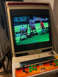 SEGA NAOMI UNIVERSAL CABINET COMPLETO Virtua Tennis e Virtua Strike 3 GIOCO ARCADE COMPLETO DI GETTONIERA + chiavi