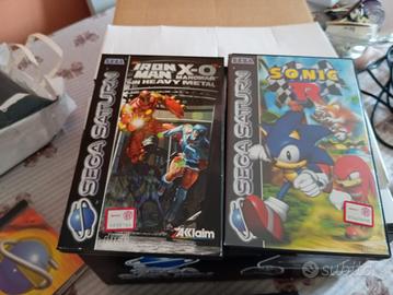 Console Sega Saturn in ottimo stato (usata poche volte) con joypad, cavi e 5 giochi (tra cui Megaman X3 PAL). Scatolo originale.