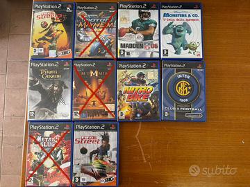 Vendo set 46 pezzi giochi PS2 Tutti i giochi giochi eccetto 4 pz. Hanno i libretti interni. Il gioco senza custodia è Pes 2. Non più disponibili presenti in foto con ❌ + gioco inter