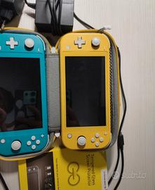 Set di 2 Nintendo switch, con 2 pellicole e custodia rigida originale. Console blu perfetta, anche la gialla solo che i joi con di quest'ultima non compiono rotazione complete. Vetrini di altissima qualità