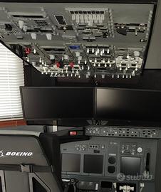 Simulatore di volo Boeing 737 800 professionale composto da MIP cockpit capitano indicatori leveraggi pulsanti reali e strumenti motorizzati, EFIS, MCP, Flight Display, Navigation Display, Head Up Dispaly, FMC CDU, Overhead Fwd indicatori servoassistiti, pulsanti reali, strumenti motorizzati, Overhead Aft indicatori servoassistiti, pulsanti reali, strumenti motorizzati, TQ Quadrant Throttle Flap Speedbreak Thrustmaster, 2 Monitor, Poltrona Boeing, Pedaliera, Yoke Cloche, Dolby surround system Panasonic, manuali e checklist, Cuffia push to talk, Licenza MSFS, Callsign Vatsim e Navigraph, Simbrief piani di volo, strumentazione reale, tenuto fon massima cura, completamente assemblato e funzionante, foto reali.