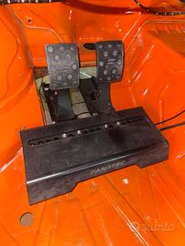 Vendesi simulatore composto da: Computer: I7 8700k 3080Ti 32gb ram DDR4 Mi2 1tb Raffreddamento liquido Asus strik z370 Alimentatore coolermaster 1000W Audio: Creative 5.1 audio Samsung curvo 200Hz 2ms Base Fanatec CSL élite Pedaliera con cella di carico CSL V2 Sedile sim racing Freno a mano arduino Compreso di scocca Audi TT MKI