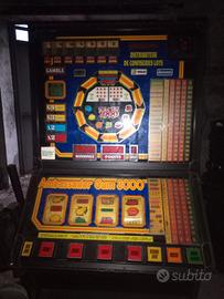 Slot-machine anni 80/90 in perfetto stato, ottima per arredo vintage. Corrisponde ad una Ambassador Gum 3000 Barcrest. Dimensioni H 170 x L 68 x P 61 cm.