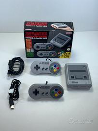 SNES Super Nintendo Classic Mini COMPLETO con SCATOLA + 2 CONTROLLER Sono inclusi 21 giochi preinstallati, tra i più iconici di sempre come Super Mario, Donkey Kong e Zelda PERFETTAMENTE FUNZIONANTE, La scatola presenta leggeri segni di usura, uno dei due controller ha una piccola parte del rivestimento del cavo leggermente danneggiata (leggermente scoperta), senza però compromettere in alcun modo il funzionamento. (vedi foto) Comprende: - Console - 2 x Controller - Cavo USB di alimentazione - HDMI - Scatola Il prodotto verrà imballato con cura per garantirne la protezione durante il trasporto, così da riceverlo nelle stesse condizioni visibili in foto. SPEDIZIONE VELOCE